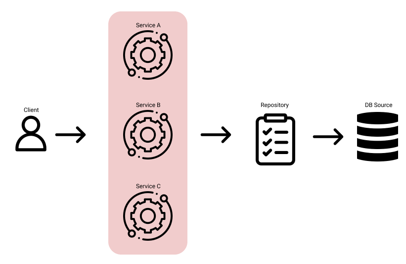 즉, 서비스에서 Data Source에 직접 접근을 하는 모습입니다.