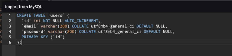 `password` varchar(200) COLLATE utf8mb4_general_ci DEFAULT NULL,