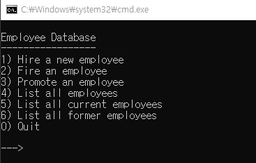 - 앞서 말했듯이 콘솔 응용프로그램이므로 메뉴 기반으로 사용자가 직원 데이터베이스에 쉽게 접근할 수 있도록 한다.