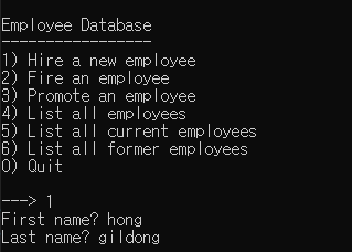 해당 목록을 입력하면 직원을 등록, 해고, 승진 시킬 수 있고