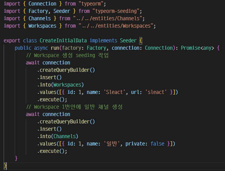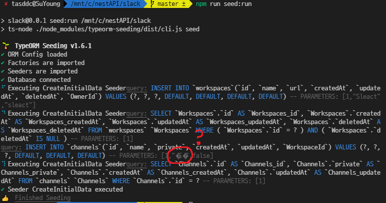 - 변경 후 , npm run seed:run 명령어 실행! 그러니 오류가 바뀐 것을 알 수 있었다!!!!