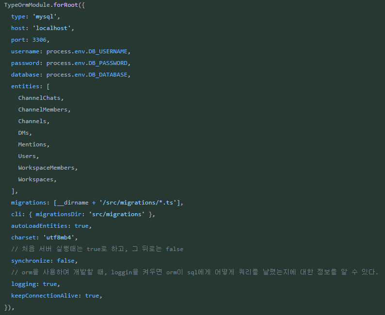 - 이때 당시에 뭘 어떻게 해야 할지를 몰라서 임시방편으로다가 ormconfig 파일을 사용하지 않고,