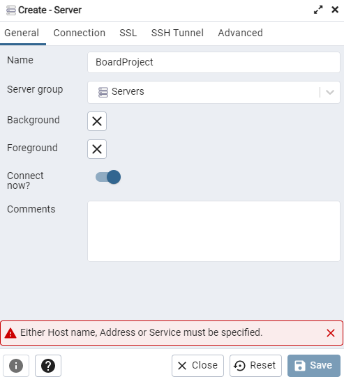 서버의 이름을 입력하고 바로 옆의 Connection Tap 으로 이동 후 아래와 같이 입력